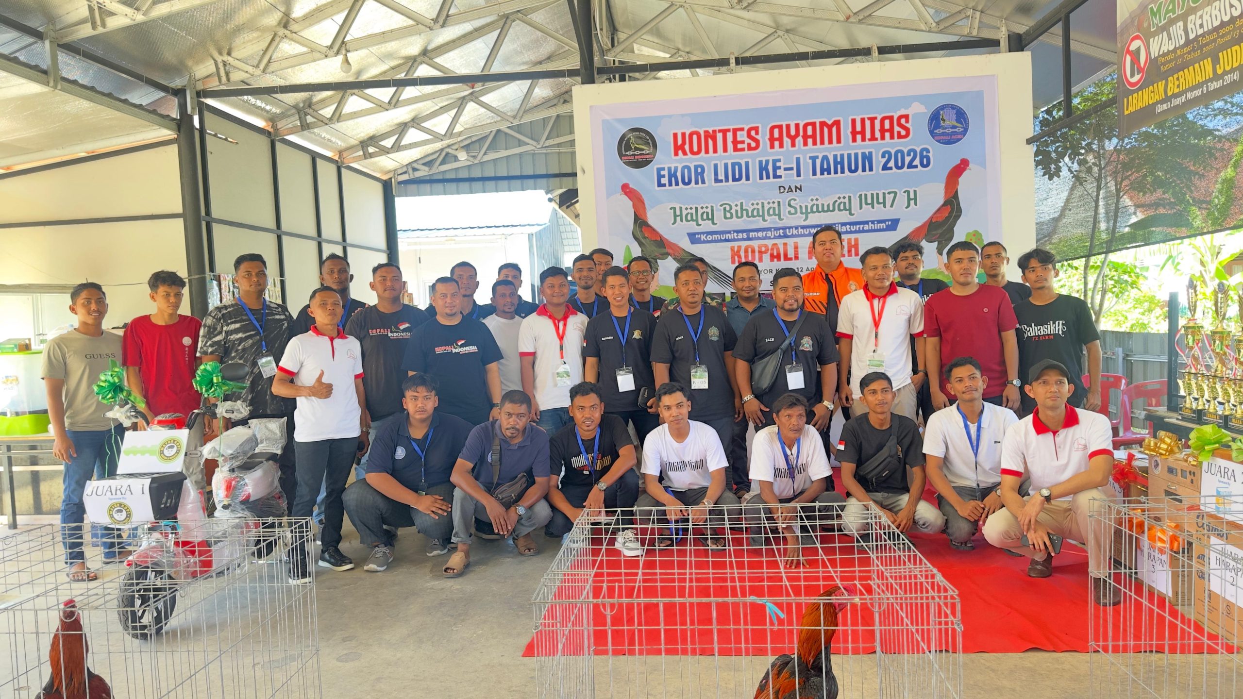 Britana.Com || Banda Aceh – Komunitas Pecinta Ayam Ekor Lidi Indonesia (KOPALI) Aceh sukses menggelar kontes ayam hias ekor lidi yang dirangkaikan dengan kegiatan Halal Bi Halal Syawal 1447 H. Acara tersebut berlangsung meriah di Mayor Kopi dan dihadiri oleh para pecinta ayam hias, komunitas, serta tamu undangan.