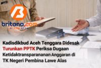 BRITANA.COM | ACEH | ACEH TENGGARA — Kepala Dinas Pendidikan dan Kebudayaan (Kadisdikbud) Aceh Tenggara didesak segera mengambil langkah tegas dengan menurunkan Pejabat Pelaksana…